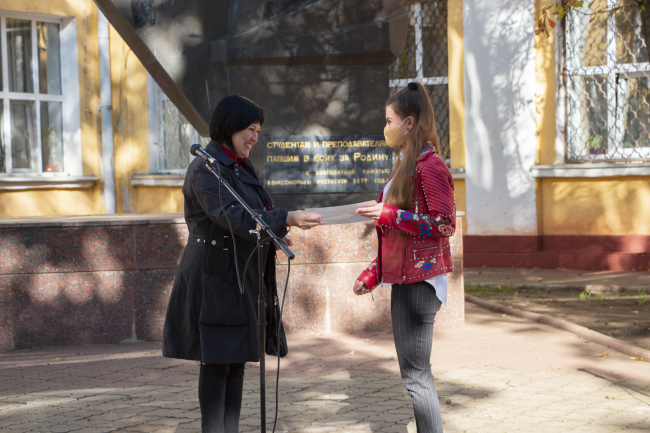 «В этом году, находясь в особых условиях, мы вручаем сертификаты обладателей Президентской стипендии нашим студентам - тем, кто проявил себя в учебе, в общественной жизни. Эти ребята занимают в университете уже другую социальную ступень, проявив себя в органах студенческого самоуправления, проведении мероприятий. Своим трудом вы доказали, как много вы можете», - отметила проректор по молодежной политике профессор Валентина Ени.