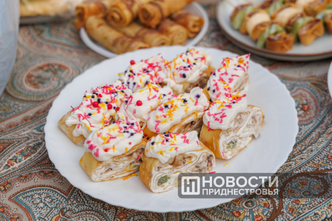 Студентки юридического факультета Анастасия Затыка и Дарья Чебан рассказали, что блины пекли после учебы до ночи – всё для того, чтобы в лучшем свете представить свой факультет. На конкурсе они презентовали блины с вареньем, с шоколадом и с мясом.