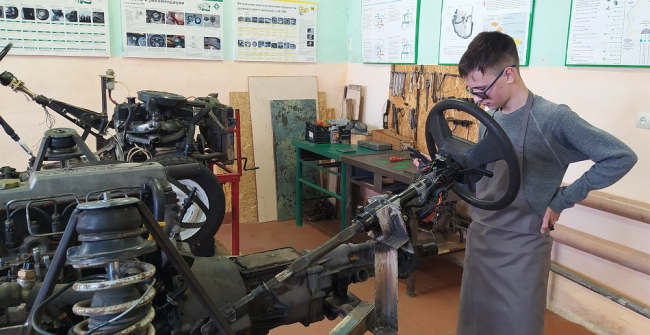 «Цель нашего занятия – привлечение молодёжи в нашу профессию. Знакомим ребят с техникой, с автомобилями. Может, интерес у кого-то появится. Учим  ремонтировать автомобили, изучаем устройство, занимаемся техническим обслуживанием. Это рабочая профессия, наше будущее. Не все могут быть инженерами, кто-то должен инженерные мысли воплощать в жизнь», - считает Николай Грекул. Изображение удалено.
