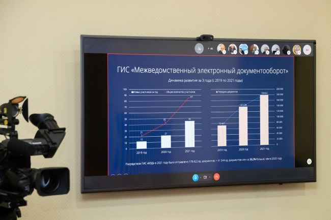 Учитывая современные условия, решение стоящих перед министерством задач тесно увязано с цифровизацией. Создано соответствующее управление. Докладчик отметил активную вовлеченность органов государственной власти, рассказал, что цифровая трансформация затронула такие сферы, как экономика, финансы, здравоохранение, образование, сельское хозяйство. В ведении Минцифры ПМР находятся девять государственных информационных систем. Одна из них – «Портал госуслуг», объединившая на данный момент 23 ведомства и представляющая информацию о 508 услугах. Удаленно можно заказать 83 из них, получить в электронном виде ответ – по 77. Из актуальных новшеств – запись на вакцинацию и ревакцинацию. Такой возможностью воспользовались 1200 человек. Всего за год через систему «Портал госуслуг» было оформлено 12,5 тысяч заявок. Количество зарегистрированных пользователей достигло 14623 (93,7% – физические лица). Сергей Бабенко выделил также систему «Межведомственный электронный документооборот», у которой 87 участников. В отчетном периоде внутри системы было отправлено 178 822 документа.