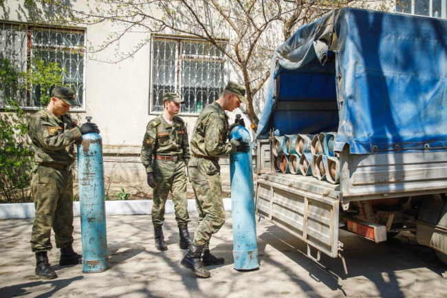 Чтобы наладить постоянную циркуляцию баллонов между кислородной станцией и медицинскими учреждениями, в марте этого года военнослужащие работали в две смены. Среднесуточный объем перемещенных баллонов достигал более тысячи единиц, сообщается на сайте Минобороны.