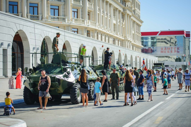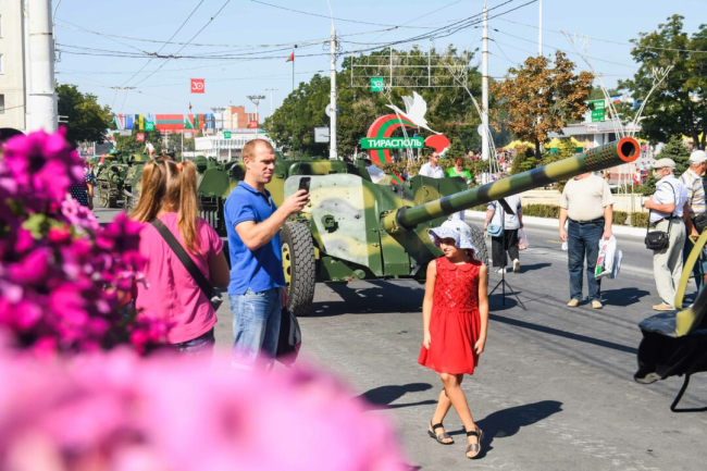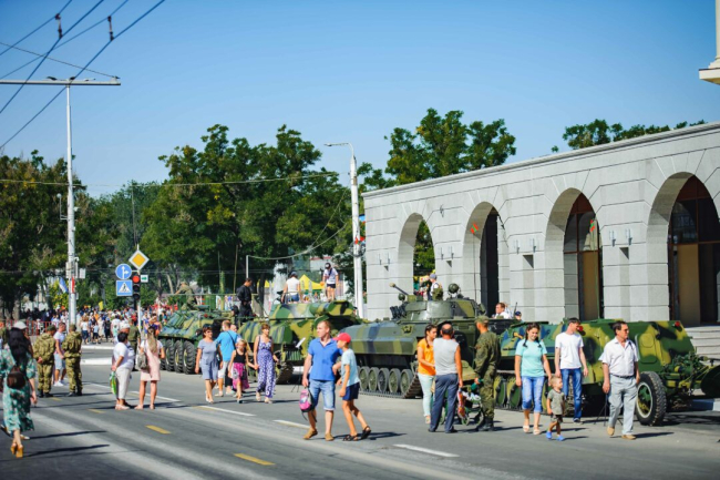 В Тирасполе по улице 25 Октября – от улицы Шевченко до Луначарского – по обеим сторонам проезжей части выстроились бронетранспортеры, гусеничные тягачи, боевые машины пехоты, образцы инженерной техники и системы залпового огня. Все образцы в свободном доступе, сообщили в пресс-службе Минобороны.