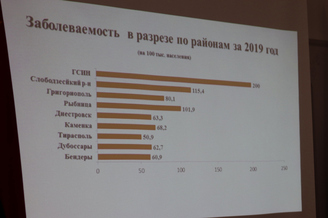 «Ситуация по туберкулезу в нашем регионе считается достаточно напряженной и носит характер эпидемии. Напомню, эпидемией считается заболевание туберкулезом свыше 50 человек на 100 тыс. населения», – сообщила Кристина Албул.