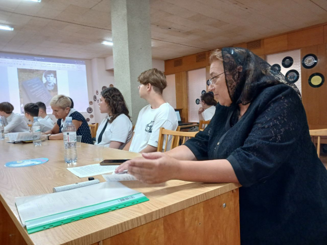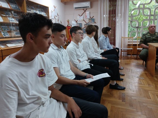 В круглом столе приняли участие атаман Черноморского казачьего войска Игорь Небейголова, сотрудник историко-краеведческого музея Галина Винник, миротворцы, защитники республики, учащиеся гимназии № 3 и лицея.