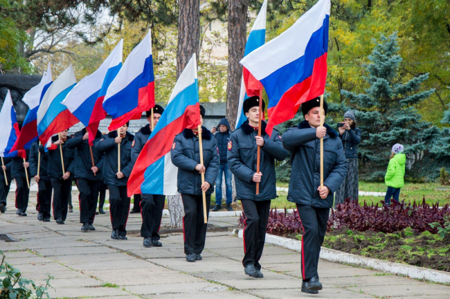 Изобразили участники театрализованного представления и важные исторические моменты для Приднестровья. Завершающим этапом мероприятия стало выступление юношей с флагами России и Приднестровья как символа единения наших народов.