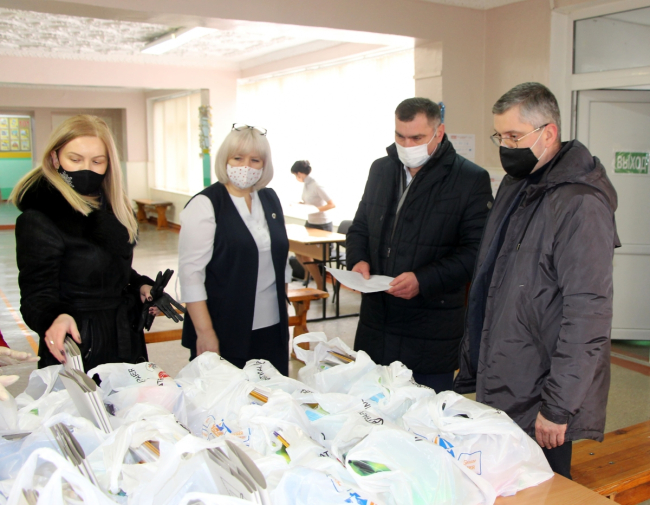 Процес выдачи канцелярских принадлежностей в гимназии проинспектировал глава города и района Виктор Тягай. Здесь наборы подготовили для 28 учащихся из 19 семей. Канцтовары классифицированы по трём комплектам - для учеников начальной школы, средних и старших классов.