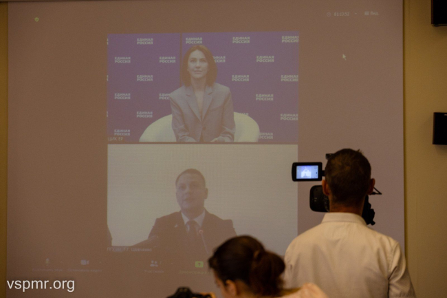 К российско-приднестровскому диалогу присоединились вице-спикер Верховного Совета Галина Антюфеева, председатель Центральной избирательной комиссии ПМР Елена Городецкая, Президент ПГУ Степан Берил и начальник управления по молодежной политике Министерства просвещения ПМР Галина Ратушняк.
