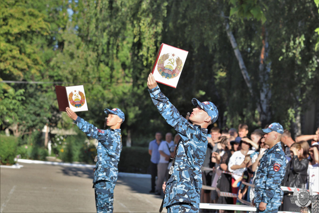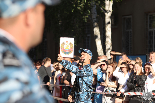 «В жизни каждого мужчины есть события, о которых он помнит всегда. Это то, чем он гордится, о чём рассказывает детям и внукам. Присяга – одно из них. Вы торжественно поклялись верой и правдой служить народу, нашему общему делу. Вам предстоит непростой жизненный путь. Но всегда помните о военном братстве, о товарищах и обязанностях. Будьте мужественны, упорны, чтобы родные и близкие гордились вами!» – обратился к присягнувшим министр внутренних дел ПМР Виталий Нягу.