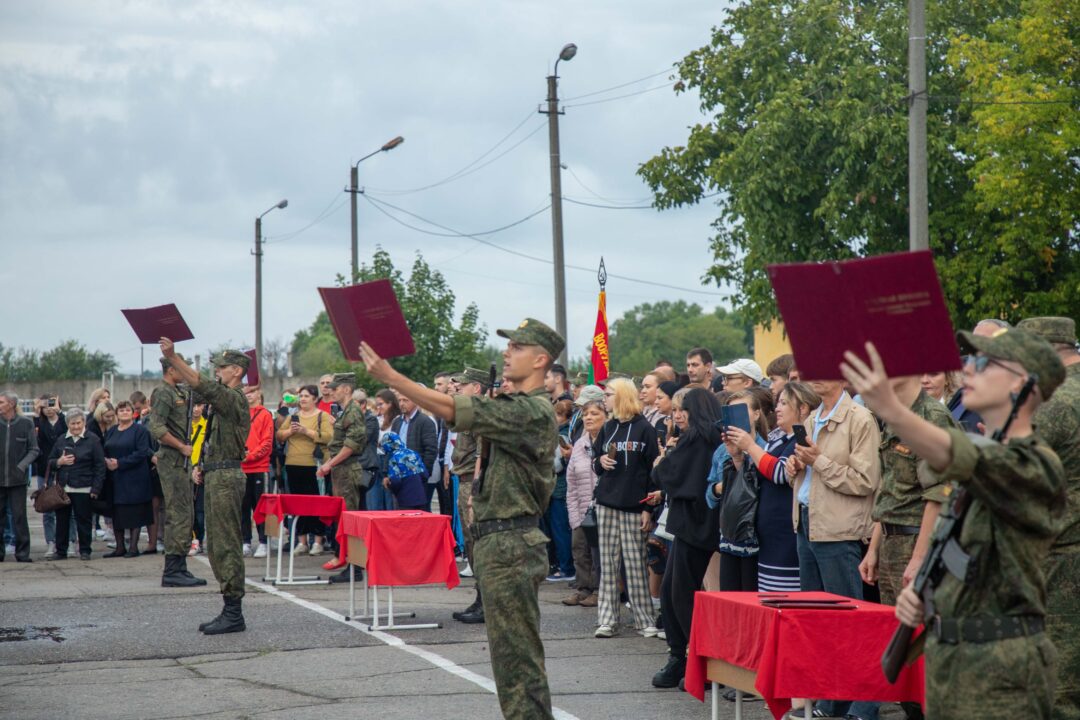 Под барабаны военного оркестра молодые солдаты прошли торжественным маршем по плацу. Знаменательная для каждого военнослужащего церемония принятия Военной присяги завершилась долгожданной встречей с родными, объятиями и поздравлениями. Впервые после курса молодого солдата.