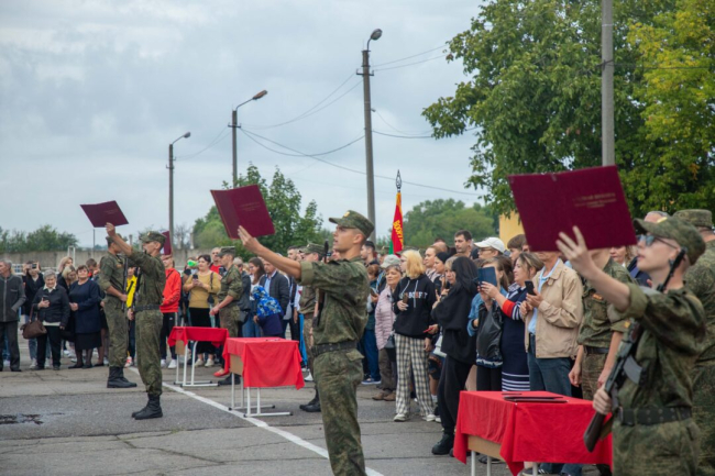 Тирасполь, 10 сентября. /Новости Приднестровья/. Новобранцы Тираспольского гарнизона приняли Военную присягу. Торжественная церемония прошла в одной из воинских частей. Поддержать молодых солдат пришли родные, близкие и друзья, сообщает пресс-служба Минобороны ПМР.