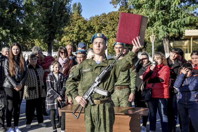 Тирасполь, 6 октября. /Новости Приднестровья/. На территории одной из воинских частей Министерства обороны прошла торжественная церемония принятия Военной присяги военнослужащими Тираспольского гарнизона. Молодые солдаты поклялись в верности Родине.