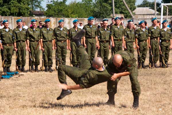 После того, как воины прошли по плацу торжественным маршем, начались показательные выступления молодых солдат роты Почетного караула и воинов армейского спецназа.