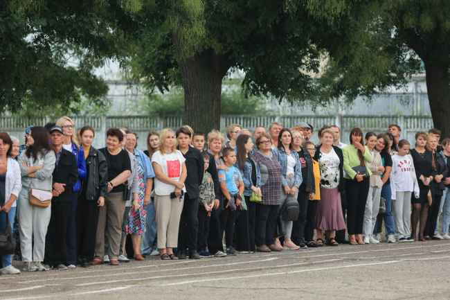 Следующий этап – принятие присяги. В торжественной обстановке, в присутствии командиров, родных и друзей новобранцы стали полноправными защитниками Отечества.