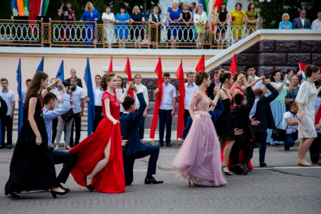 Завершилось праздничное мероприятие парадом медалистов. После этого все выпускники проследовали в свои образовательные учреждения на торжественную церемонию вручения аттестатов об окончании среднего полного общего образования.