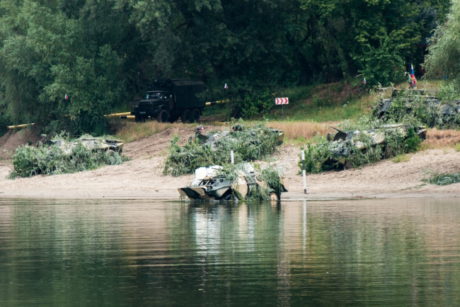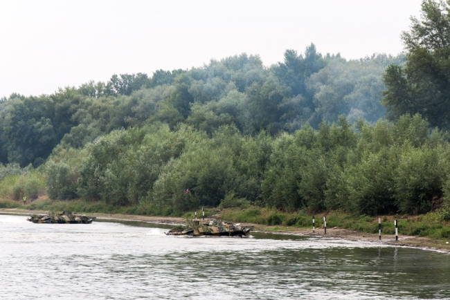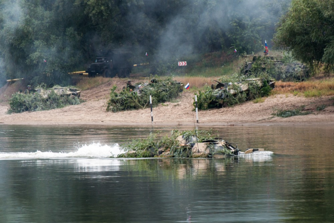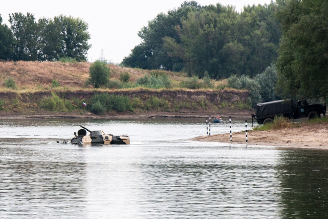 Бронетехника ОГРВ и ПМР преодолела реку, чтобы блокировать и ликвидировать условных «террористов»