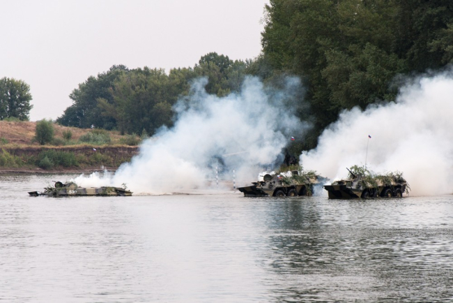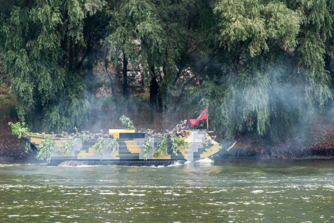 Тирасполь, 3 августа. /ИА «Новости Приднестровья»/. В Приднестровье прошел заключительный этап совместных российско-приднестровских антитеррористических учений. Согласно плану подготовки Юго-западного военного округа России, мотострелковые подразделения Оперативной группировки российских войск в Приднестровье (ОГРВ) провели тренировку преодоления водных преград. К речным маневрам с высадкой пехоты на берегу присоединились и бойцы Минобороны ПМР.