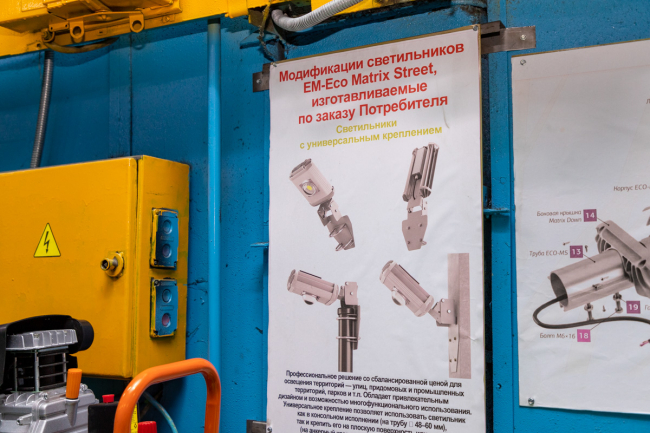 «В настоящее время в производство включено 325 фонарей всех типов исполнений. Всего цех рассчитан на изготовление около 600 светильников в месяц. Конкретных заказчиков ещё нет, мы их ожидаем, поэтому пока формируем складской запас», - рассказал Максим Медушевский.