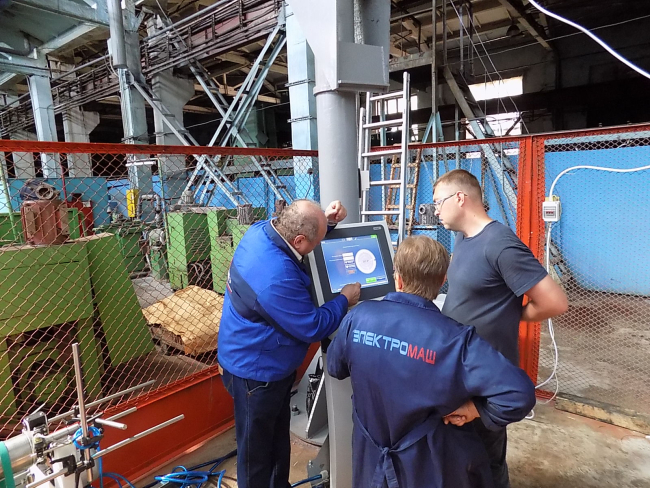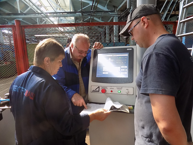 Сейчас на заводе устанавливают новый станок. Это оборудование с высокой точностью определяет тип и вид дисбаланса ротора электродвигателя и автоматически выдает необходимые требования оператору для устранения этого дисбаланса. Для наладки станка приехал специалист российский фирмы-изготовителя «Диамех 2000». Под его руководством специалисты «Электромаша» сразу проходят обучение.