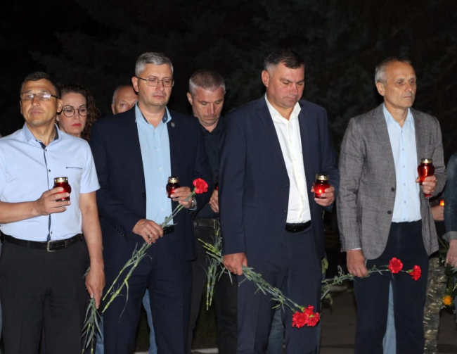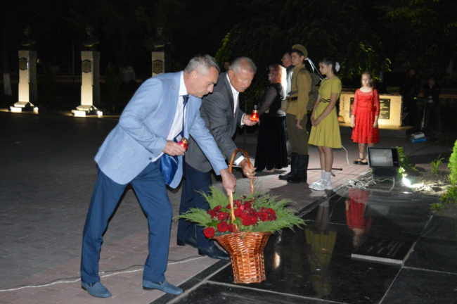 На рыбницком Мемориале свечи тоже зажгли в 4 утра. Вместе с горожанами почтить память тех, кто погиб в годы Великой Отечественной войны, пришли руководители Рыбницкого района, представители общественных организаций и учреждений города.