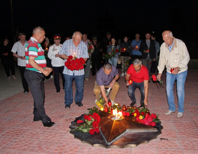 В акции «Свеча памяти» в Дубоссарах приняли участие руководители госадминистрации, ветеран Великой Отечественной войны Владимир Зайчук, представители общественных организаций, предприятий, молодежь.