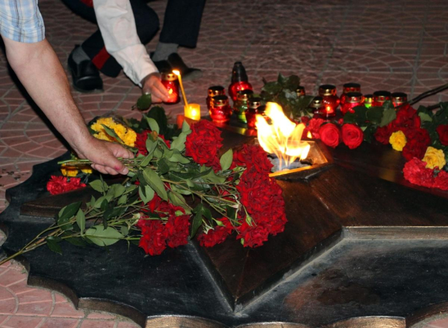 Сегодня на рассвете у подножия Вечного огня на площади Героев собрались и жители Бендер. «Нас двадцать миллионов незабытых, убитых, не вернувшихся с войны…», - эти слова Рамсула Гамзатова легли в основу театрализованного представления, которое развернулось в предрассветной тишине на священном для бендерчан месте – площади Героев. Здесь, в братской могиле, покоится около 1,5 тысяч советских воинов, которые погибли, защищая Бендеры.
