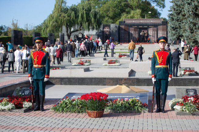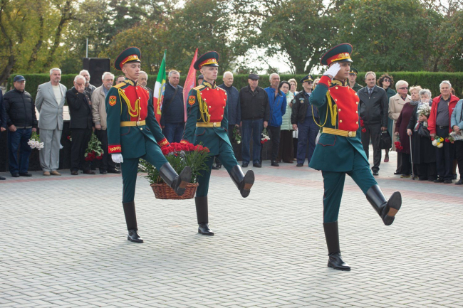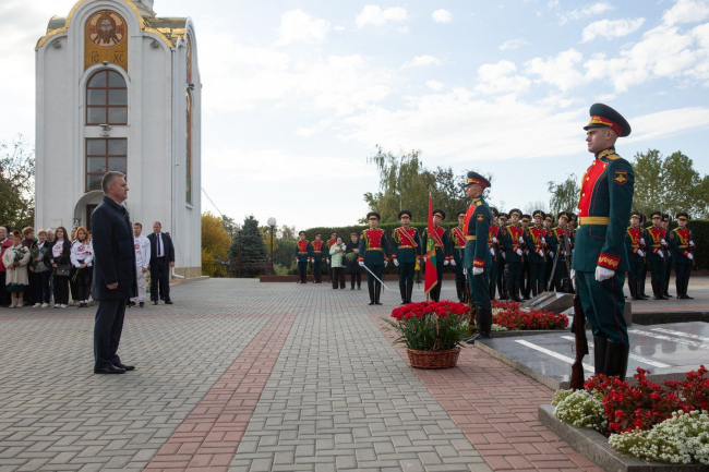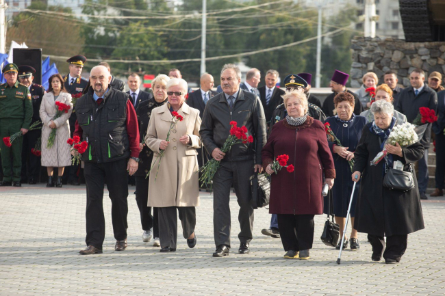 Праздничные мероприятия стартовали накануне – в воскресенье. Сегодня проходят официальные торжества. Первые лица государства, руководство города, военнослужащие и духовенство, представители ведомств, предприятий, общественных организаций, курсанты, суворовцы, кадеты, юнармейцы, жители и гости Тирасполя собрались на Мемориале Славы, чтобы почтить память героев, в разные исторические периоды защищавших город.