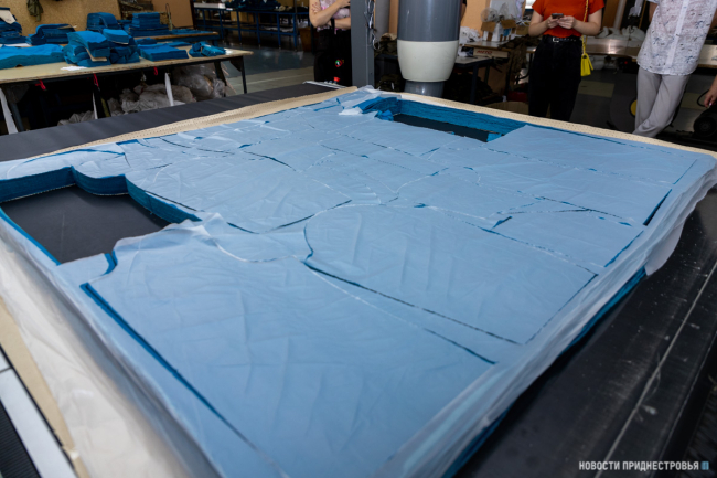 Экскурсия по фабрике началась с подготовительно-раскройного цеха. Абитуриентам рассказали, как с помощью автоматического раскройного комплекса быстро и с минимальными отходами вырезают детали будущего изделия.