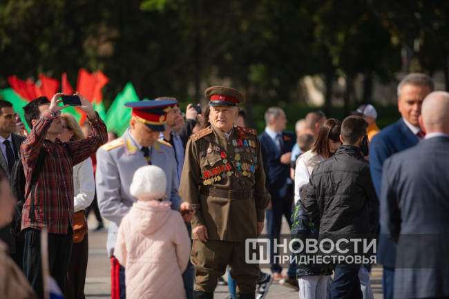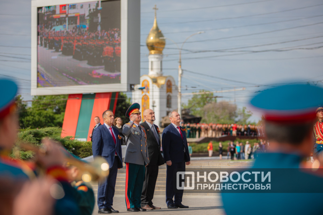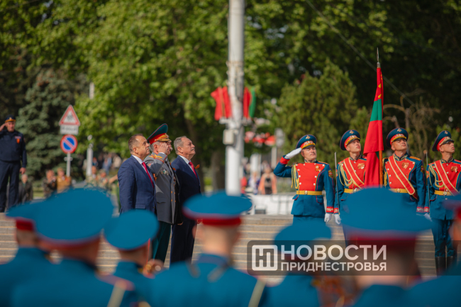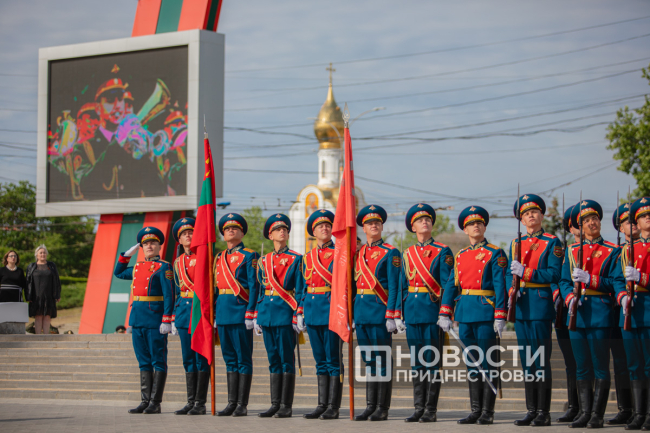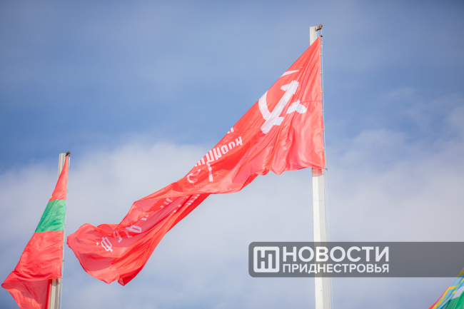 Тирасполь, 9 мая. /Новости Приднестровья/. На площади Суворова в Тирасполе под гимн Советского Союза подняли Знамя Победы.