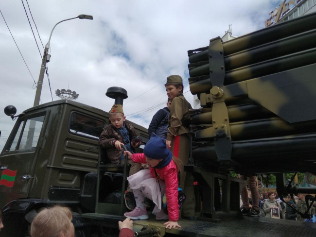 Самое приятное для юных приднестровцев состояло в том, что все военные машины можно было не только потрогать, но и взобраться на них.