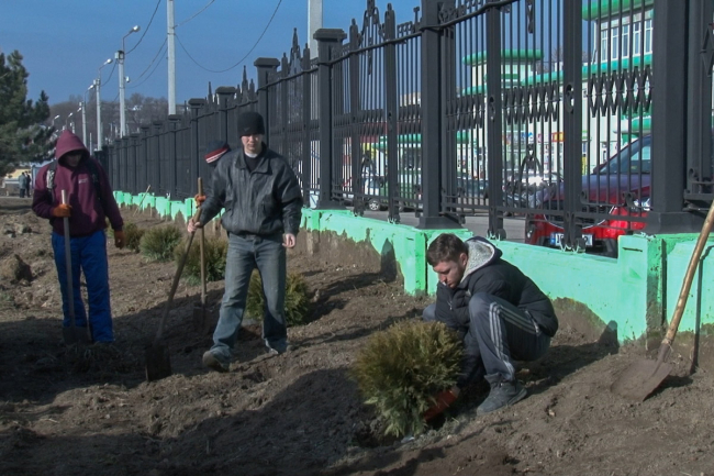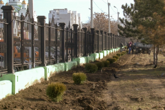 Сегодня сотрудники «Спецзеленстроя» высадили почти 80 кустарников туи, причём сразу двух видов: шаровидные и смарагды. Со временем они превратятся в живую стену, сообщает Первый Приднестровский телеканал.