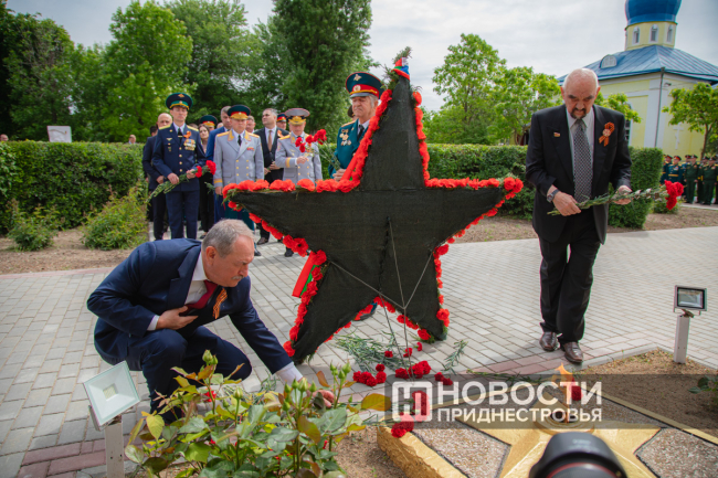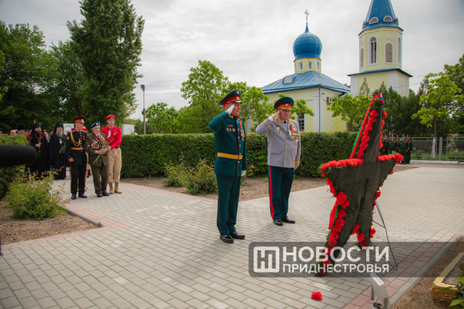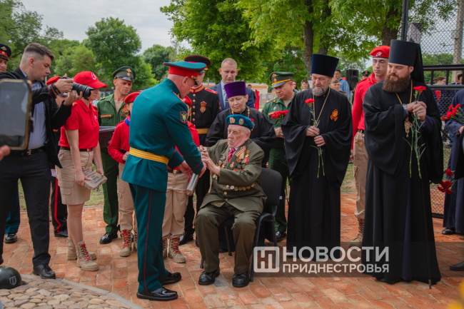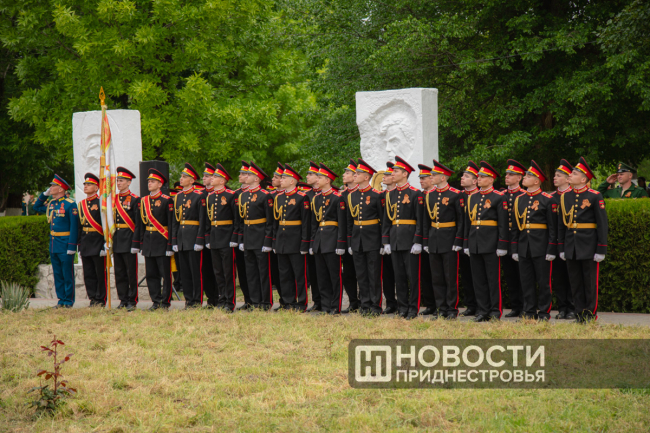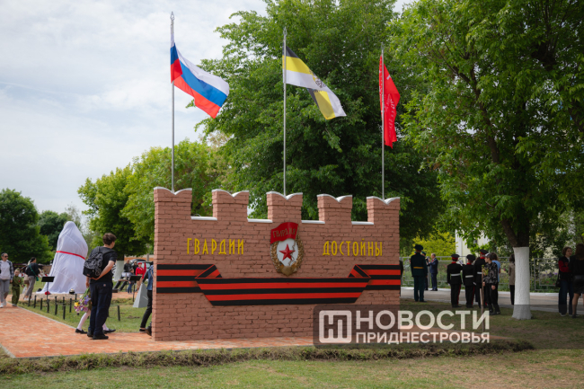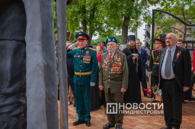 Почетное право открыть монумент предоставили начальнику ОГРВ Дмитрию Зеленкову, ветерану Великой Отечественной войны Владимиру Громову и тем, кто стоял у истоков образования Приднестровья.
