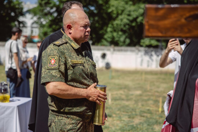 «Министерство обороны тесно сотрудничает с Тираспольско-Дубоссарской епархией. С 2017 года подписан договор о взаимном сотрудничестве и разработана соответствующая концепция работы. Храм строится, чтобы повысить уровень духовного просвещения и нравственного воспитания военнослужащих. Он будет первым храмом в Вооруженных силах, его смогут посещать все жители республики», – отметил заместитель министра обороны подполковник Сергей Поляков.