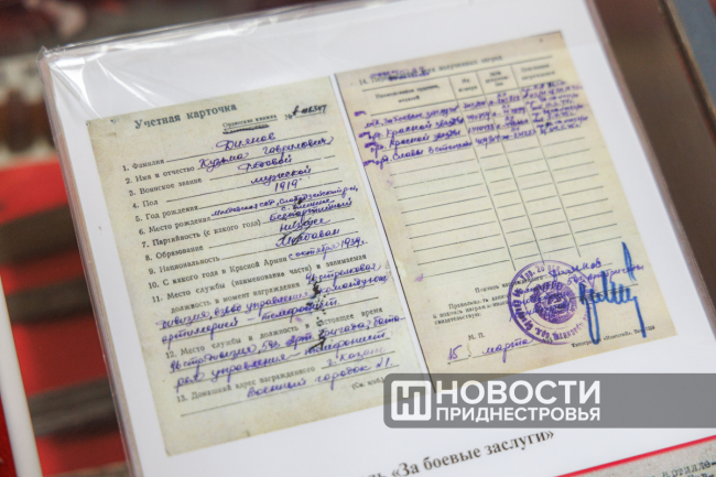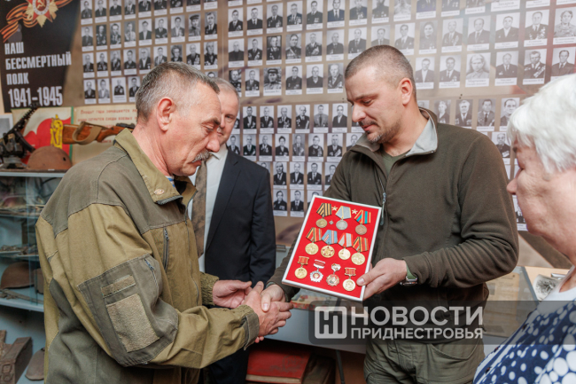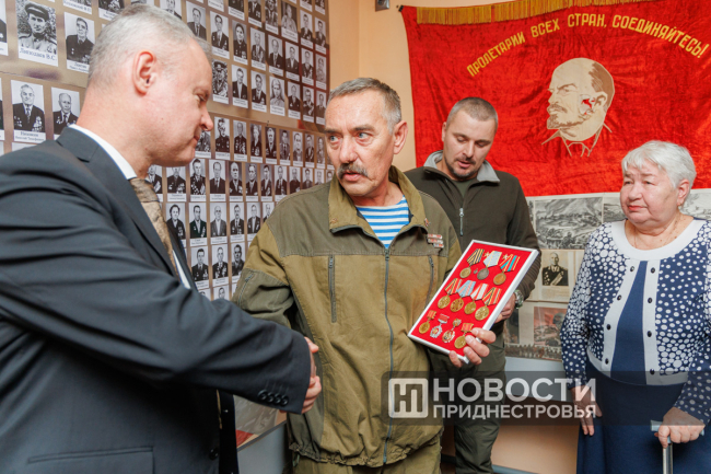 Днестровск, 28 ноября. /Новости Приднестровья/. Сегодня в Днестровске руководитель поискового движения Алексей Петрович и советник Посольства Российской Федерации Александр Андреев передали родным ветерана Великой Отечественной войны Кузьмы Диянова его награды, которые были вывезены из республики около сорока лет назад. Вместе с наградами родные получили копии наградных документов из архива Министерства обороны Российской Федерации.