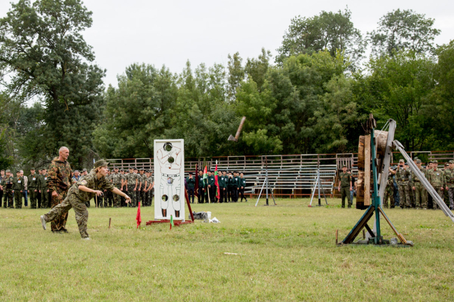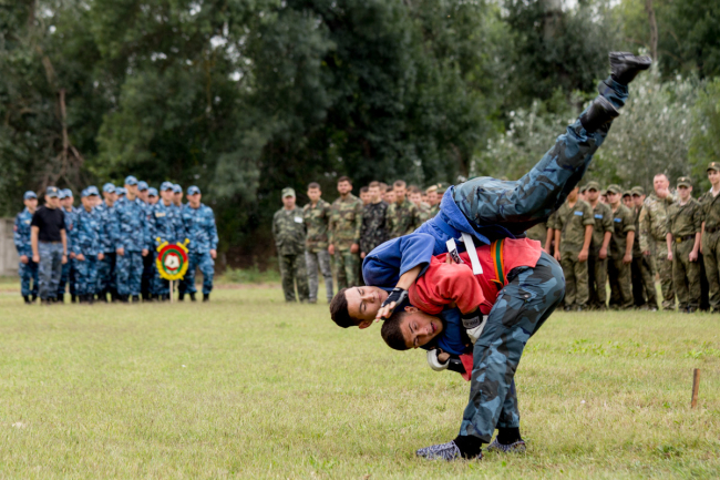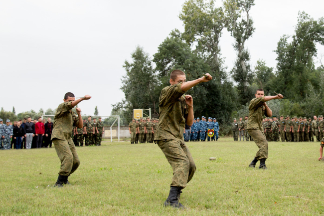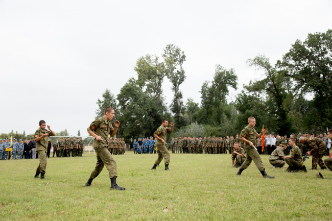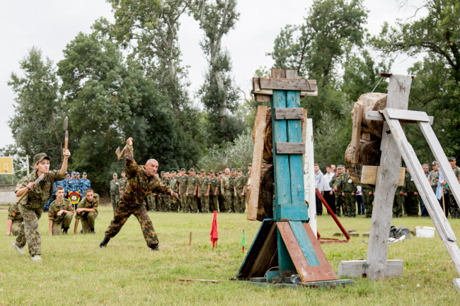 Показательные выступления в боевых искусствах и метании ножей продемоснтрировали суворовцы и курсанты Тираспольского юридического института. Затем была организована выставка оружия.