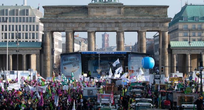 Тысячи человек собрались сегодня возле Бранденбургских ворот в Берлине на демонстрацию за экологически чистое сельское хозяйство и здоровое питание. Под лозунгом «Мы сыты по горло агропромом!» производители сельхозпродукции, а также защитники животных и окружающей среды приурочили акцию протеста к проведению ежегодной аграрной выставки «Зеленая неделя».