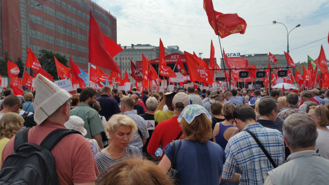 Сегодня прошла первая в Москве массовая акция против повышения пенсионного возраста. Организованный КПРФ митинг собрал на проспекте Академика Сахарова, по заверениям организаторов, 100 тыс. человек. Однако в МВД сообщили о 6,5 тыс. участников.
