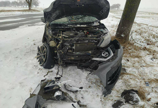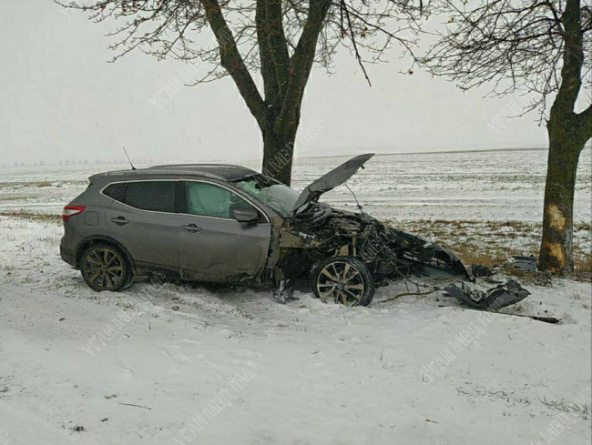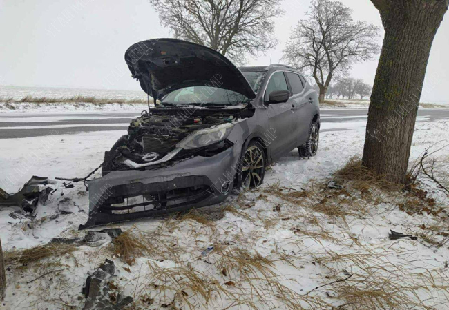 Как сообщает пресс-центр МВД, всё случилось сегодня в 10:40. Автомобиль под управлением 38-летнего водителя вылетел со скользкой дороги и врезался в дерево.