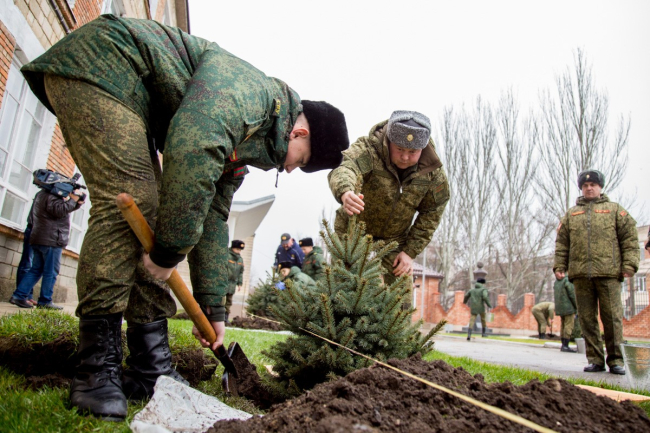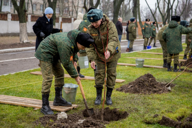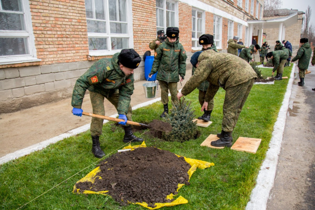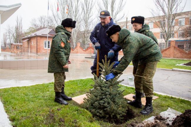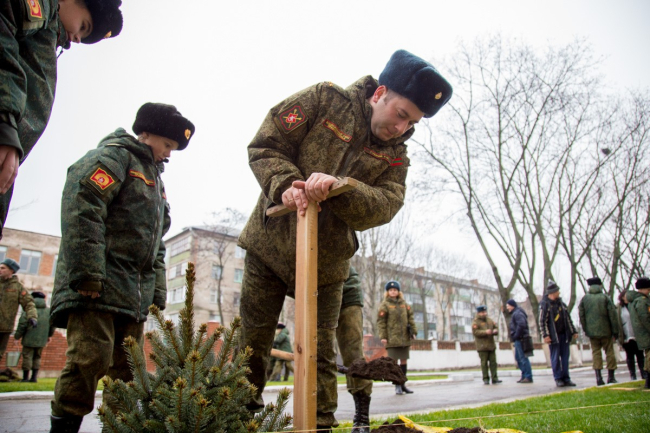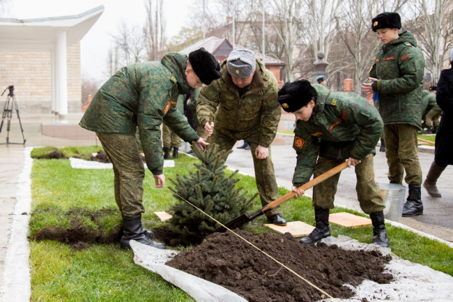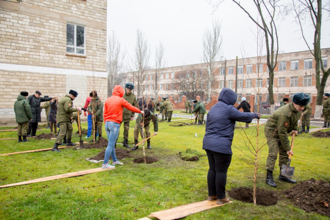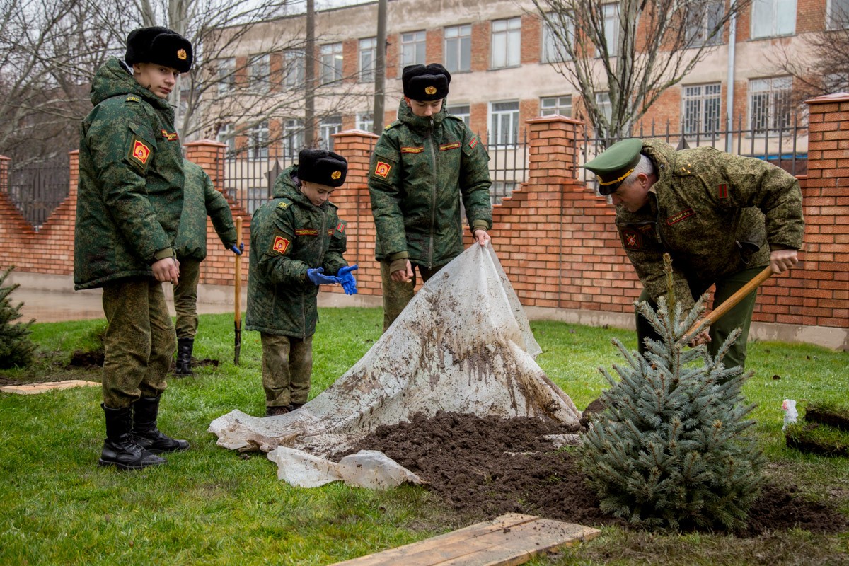 Тирасполь, 29 ноября. /Новости Приднестровья/. Новая аллея появилась в Тираспольском Суворовском военном училище. Голубые ели, берёзы и липы – в общей сложности 32 дерева сегодня высадили воспитанники учебного заведения совместно с педагогами. В мероприятии приняли участие министр обороны Олег Обручков, а также начальник Оперативной группы российских войск в Приднестровье Дмитрий Зеленков и Первый Президент ПМР Игорь Смирнов, который является председателем попечительского совета училища.