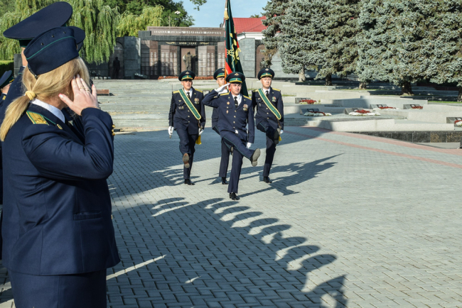 Традиционно в завершение торжественной церемонии таможенники возложили цветы к Вечному огню, могилам советских воинов и защитников Приднестровья, сообщается на сайте ГТК.