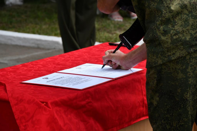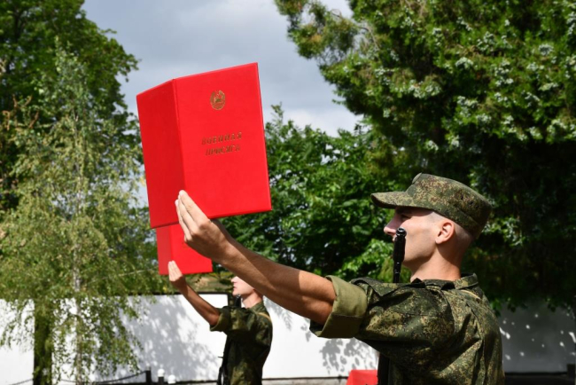 Тирасполь, 14 июля. /Новости Приднестровья/. В Пограничном управлении Министерства госбезопасности ПМР новобранцы принесли клятву на верность Родине. Как сообщила пресс-служба МГБ ПМР, разделить эту радость пришли их родные и близкие.