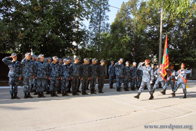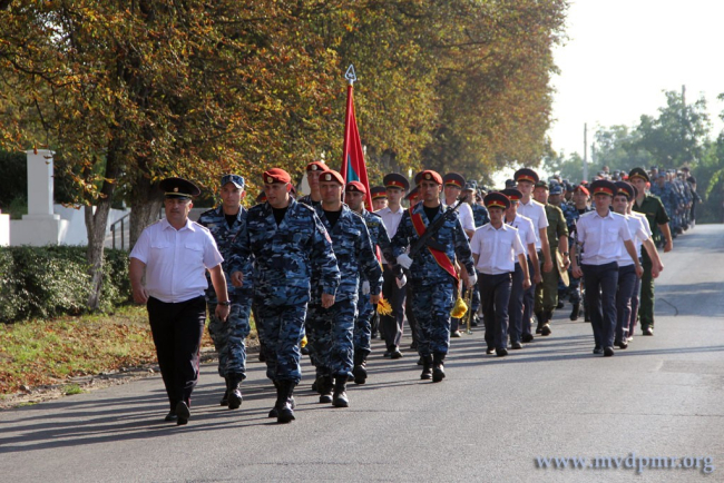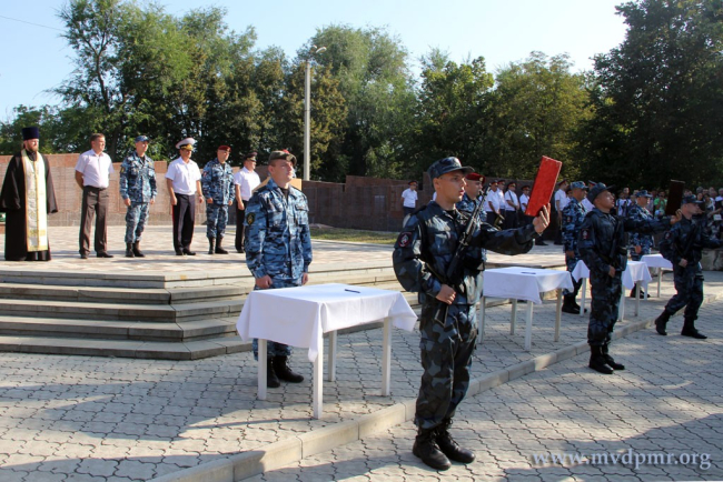 Тирасполь, 26 августа. /Новости Приднестровья/. В Специальной моторизованной войсковой части Министерства внутренних дел состоялась торжественная церемония приведения молодого пополнения к Военной присяге. Мероприятие началось на плацу СМВЧ с выноса знамени. Оттуда во главе с первым заместителем министра внутренних дел Сергеем Левинским и командиром подразделения Денисом Георгицей личный состав и новобранцы части в пешем порядке выдвинулись к мемориалу Славы села Парканы.