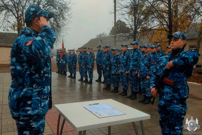 Сегодня в торжественной обстановке новобранцы произнесли слова присяги перед личным составом. Теперь они полноправные бойцы спецподразделения МВД. За год службы им предстоит перенять знания и опыт у старших товарищей и стать надёжными защитниками жителей Приднестровья.