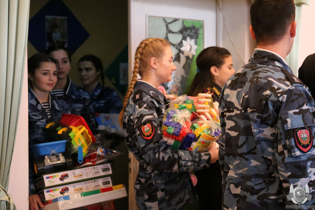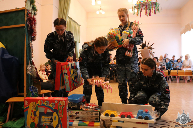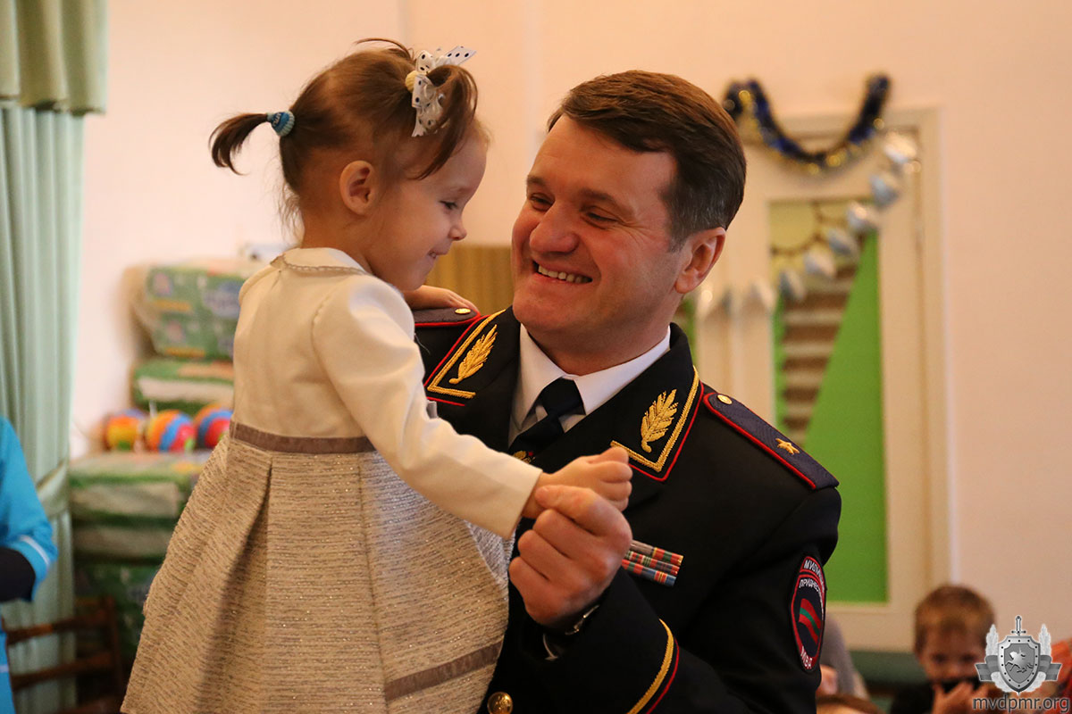 Тирасполь, 25 декабря. /Новости Приднестровья/.  На новогодний утренник в Республиканский специализированный дом ребёнка с подарками и угощениями пришли руководство и курсанты ТЮИ МВД во главе с руководителем ведомства.