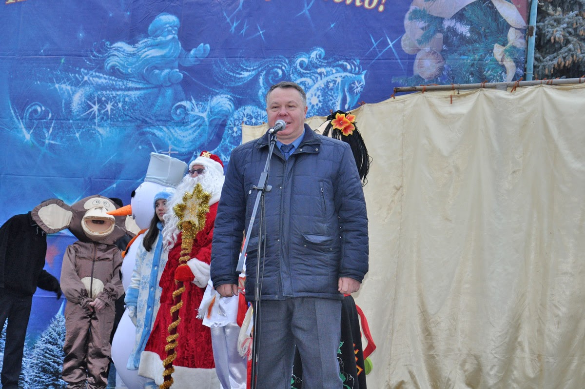 В театрализованном празднике, устроенном местным управлением культуры, приняло участие множество детей и их родителей. После зажигательной концертной программы новогодняя ель зажглась праздничными огнями.