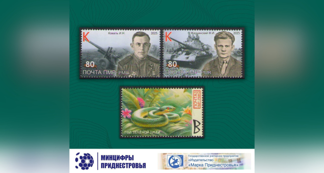 Бендеры, 24 января. /Новости Приднестровья/. 25 января с 10:00 до 11:00 в Бендерах, в почтовом отделении № 15 (улица Ленина, 22), пройдёт презентация новых серий марок «Год Зелёной Змеи» и «80 лет Победы».