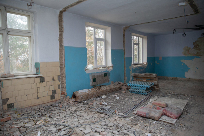 Делегация во главе с Президентом посетила сельскую врачебную амбулаторию села Дойбаны-1. Здание для нее было построено в 1968 году, все эти годы использовалось, но не ремонтировалось. Лечебное заведение оказывало медицинские услуги жителям шести сел района: Дойбаны-1, Дойбаны-2, Койково, Дубово, Гояны и Новые Гояны. Реконструкцию двухэтажного здания начали в 2023 году – отремонтировали кровлю, обновили систему водостока, поменяли оконные и дверные блоки. В нынешнем году занимаются сетью теплоснабжения, осуществили перепланировку помещений, идут внутренние ремонтные работы. Помимо амбулатории, в корпусе предполагается разместить учреждение для проживания одиноких граждан преклонного возраста, нуждающихся в уходе и медицинской помощи. Проектом в этом блоке на 50 человек предусмотрены комнаты-палаты с санузлами и душевыми, лифт и пищеблок. По окончании внутреннего ремонта рассчитывают привести в порядок фасад и благоустроить прилегающую территорию.