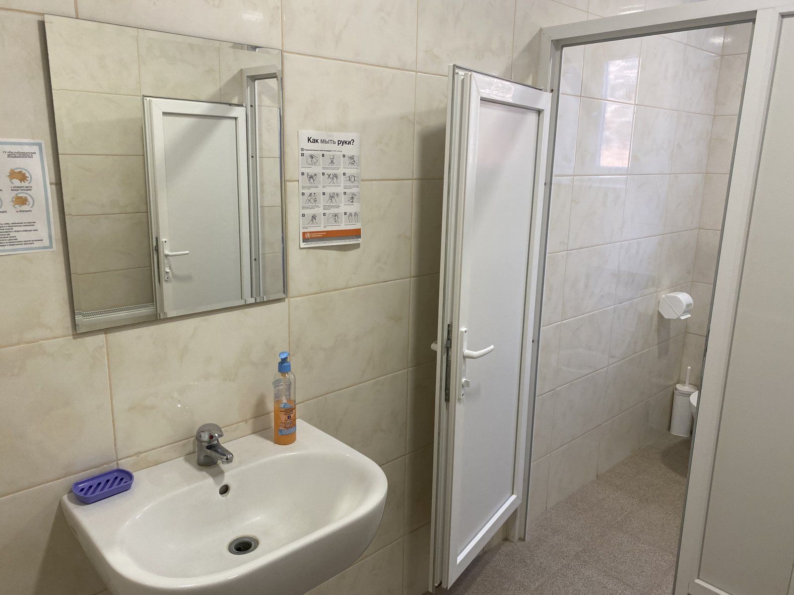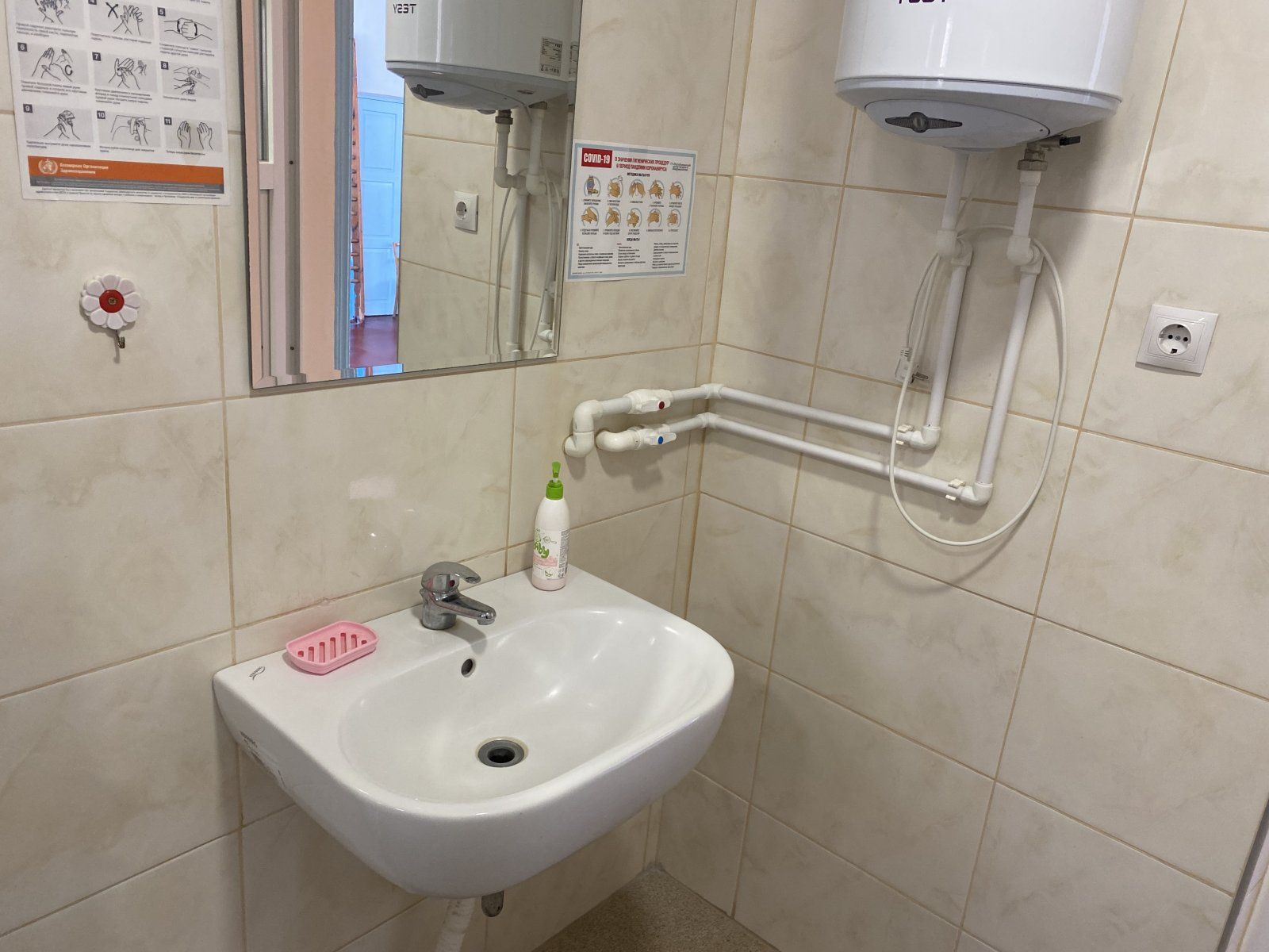 Теперь в дойбанской школе есть горячая вода, новые умывальники и зеркала. Раньше ученикам и учителям приходилось пользоваться уличным санузлом.