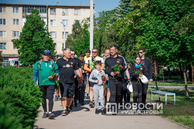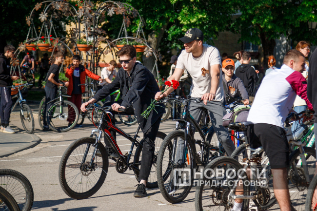 Патриотический велопробег в Бендерах прошёл уже в восьмой раз. Основная цель акции – почтить память советских воинов и поздравить жителей республики с 79-й годовщиной.