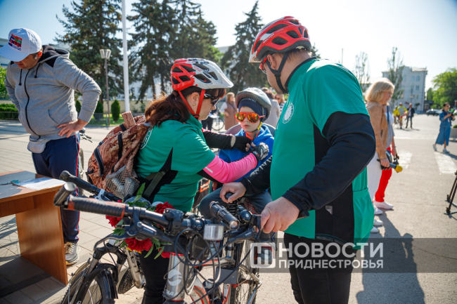 Бендеры, 4 мая. /Новости Приднестровья/. На бендерской площади Освобождения сегодня утром стартовал велопробег по местам воинской славы. Путь длиною в 15 километров преодолевали около 500 человек в память о героях Великой Отечественной войны.