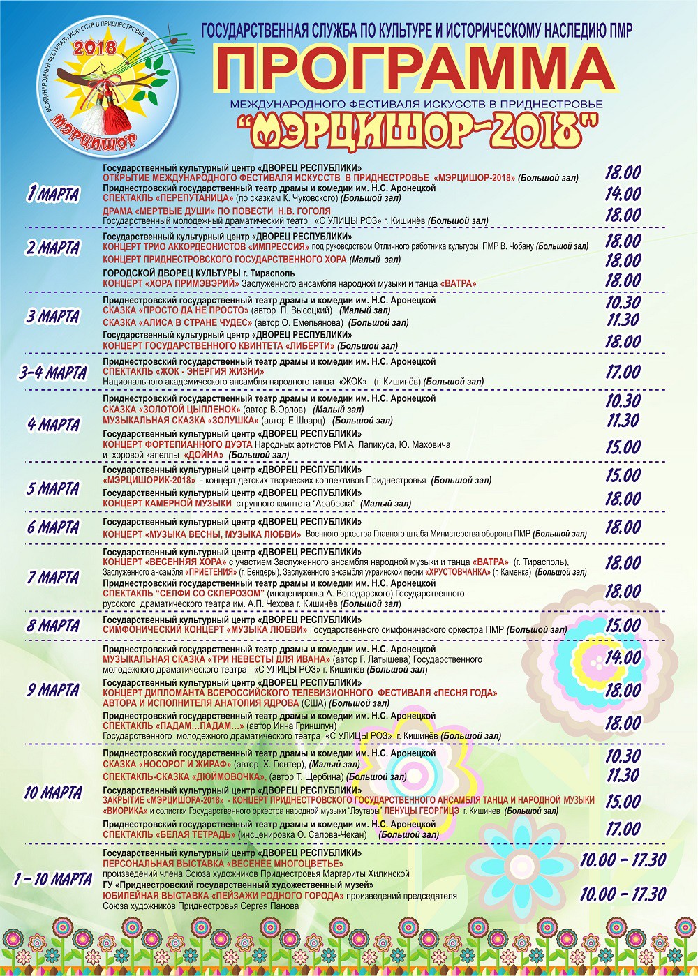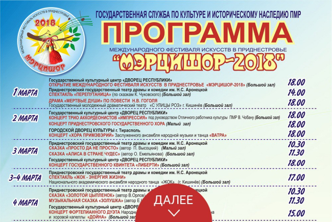 Тирасполь, 27 февраля. /Новости Приднестровья/. Традиционно Международный фестиваль искусств «Мэрцишор – 2018» проводится в первые 10 дней весны.